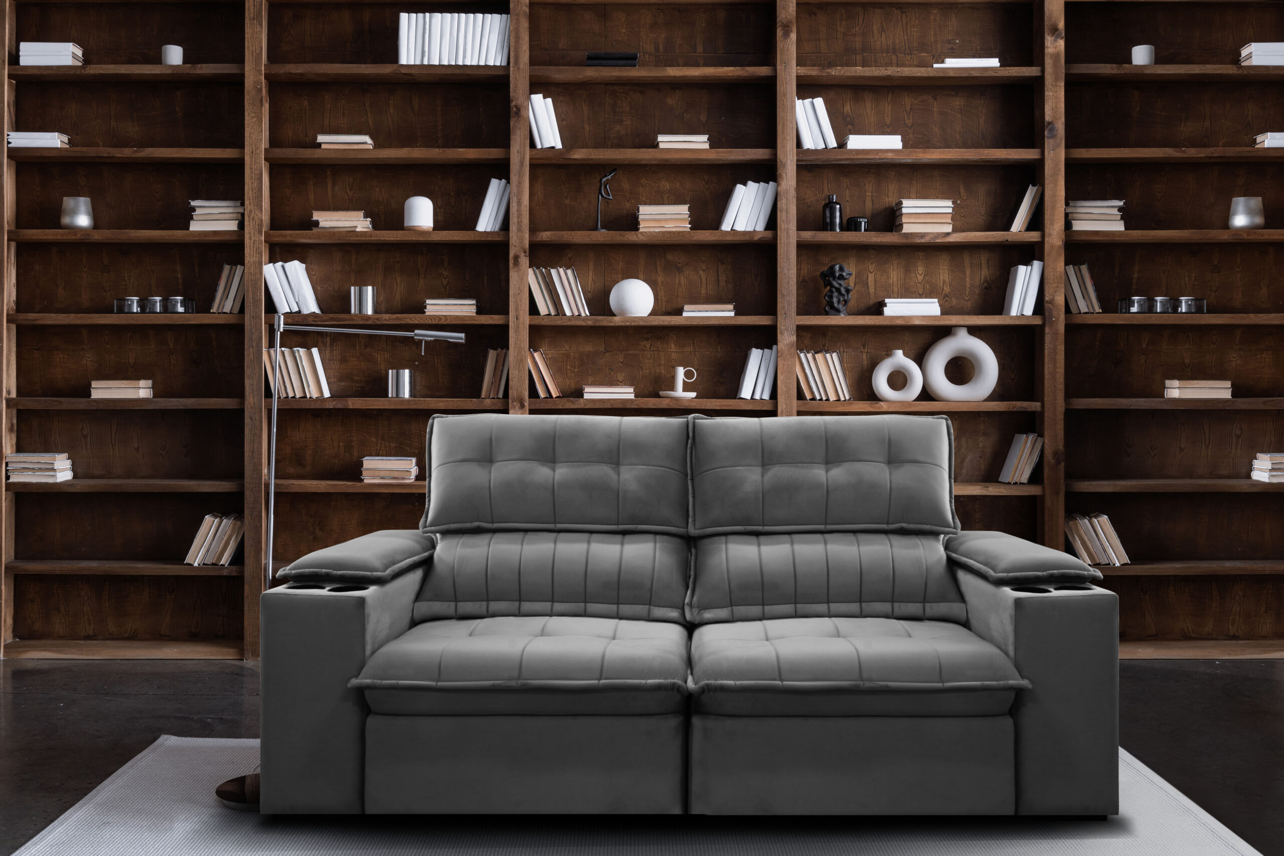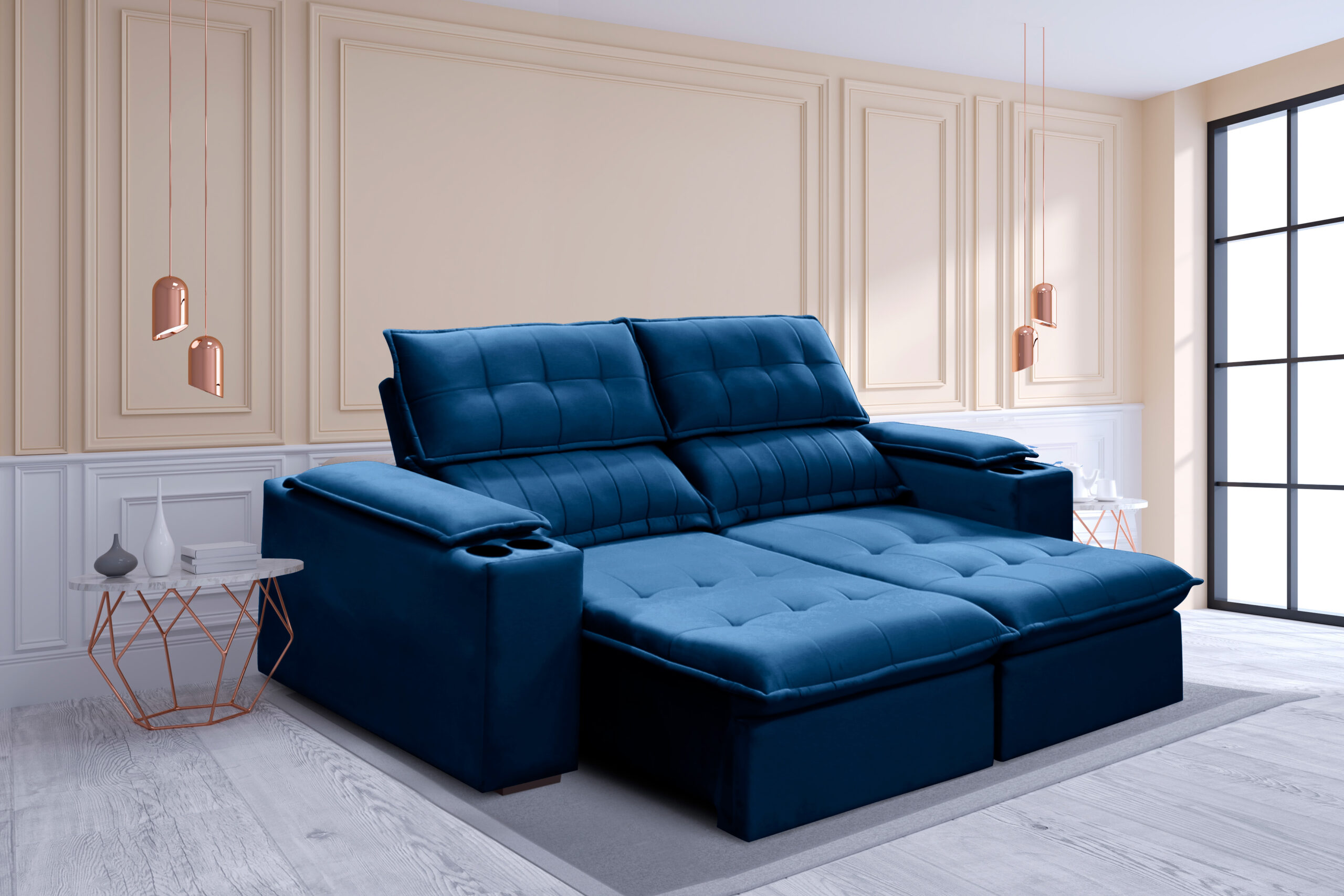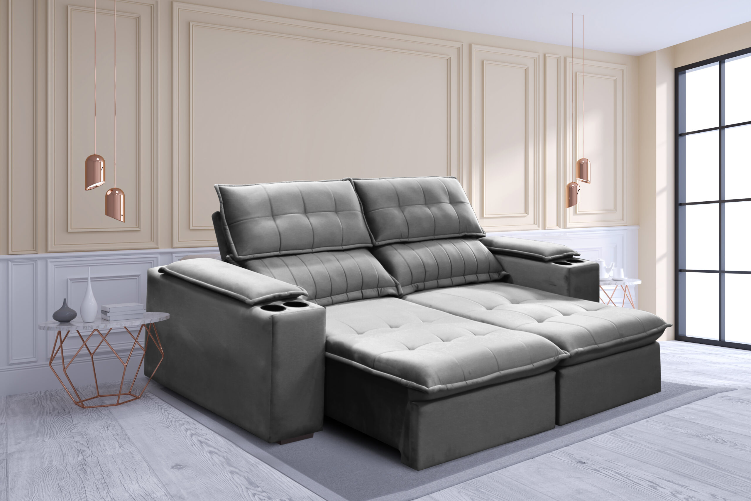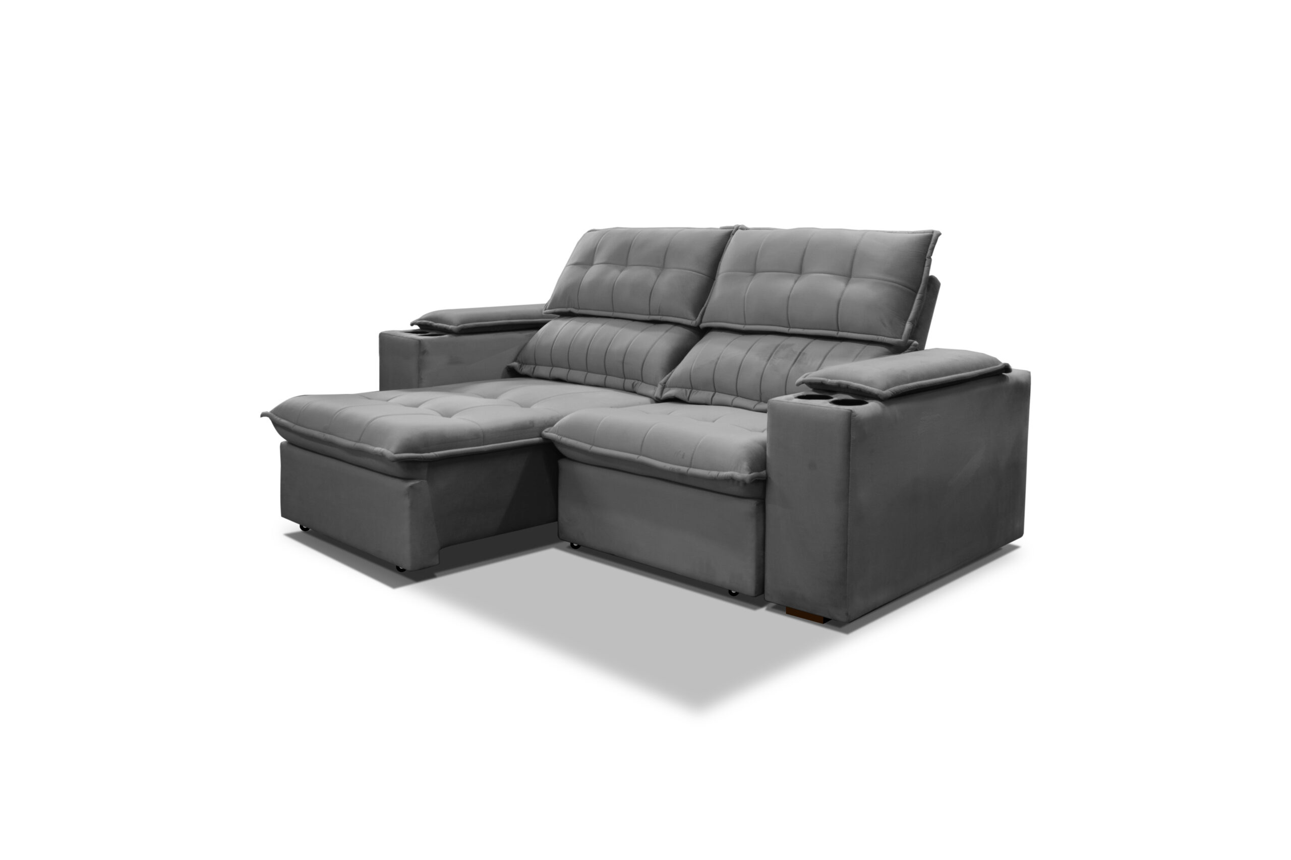 Sofá Venice, sofá reclinável com encosto removível, braço com almofada e porta copo