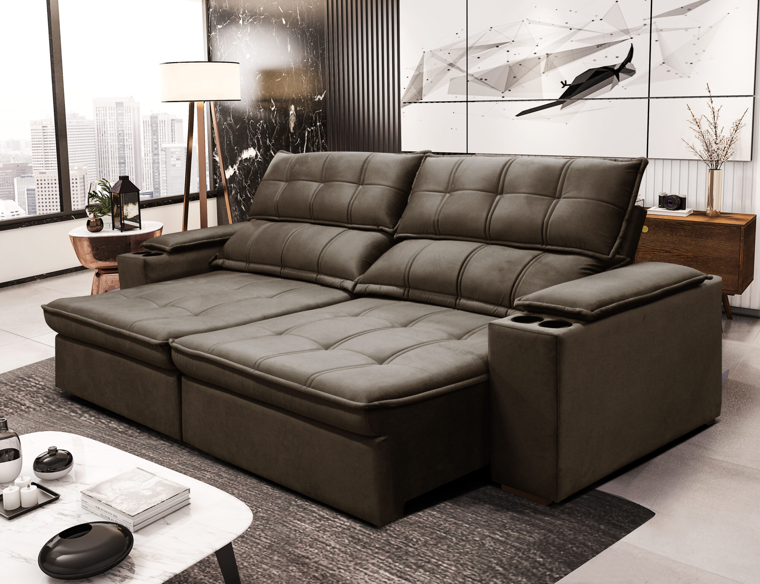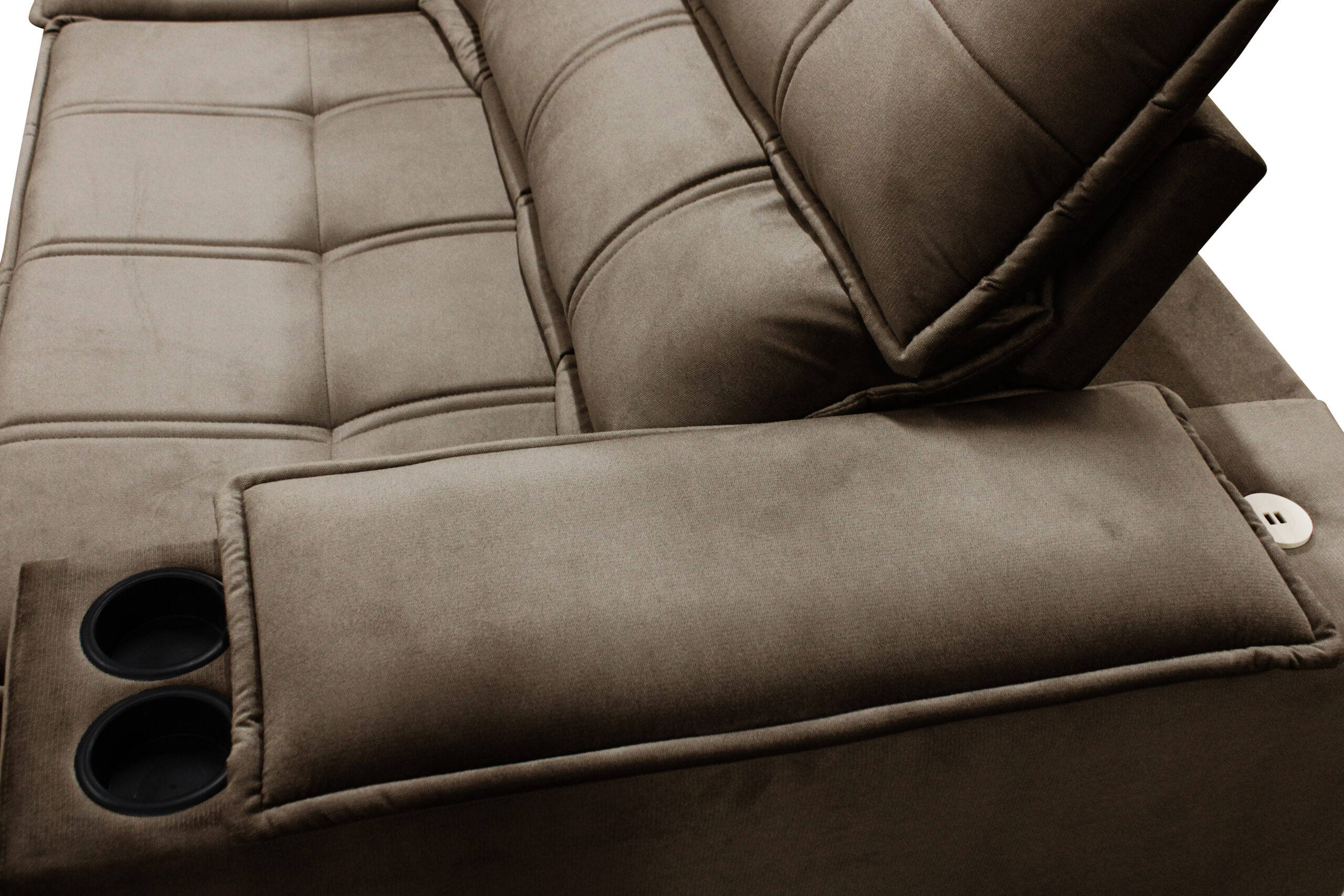 Sofá Florença, sofá reclinável, com porta copos e entrada USB
