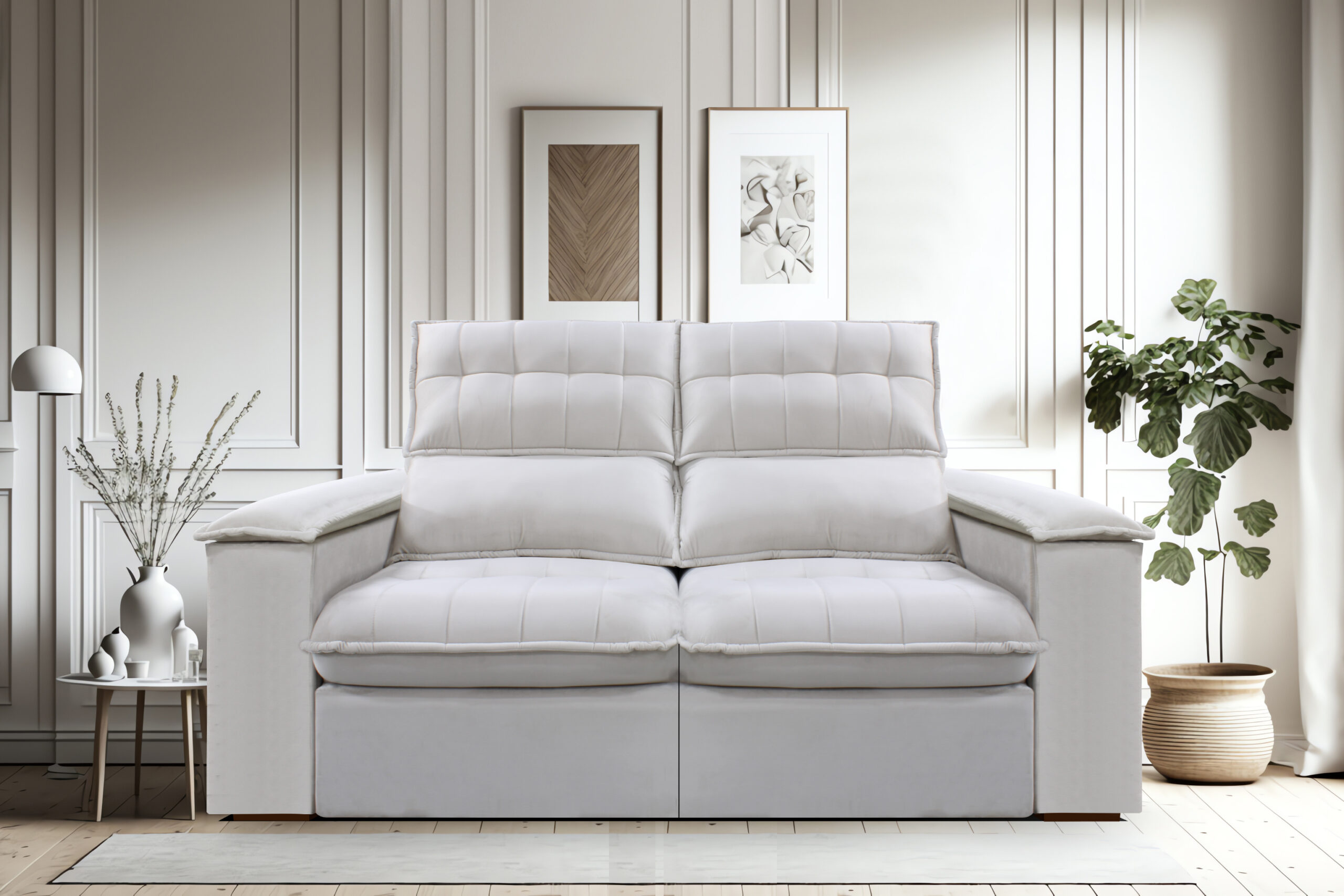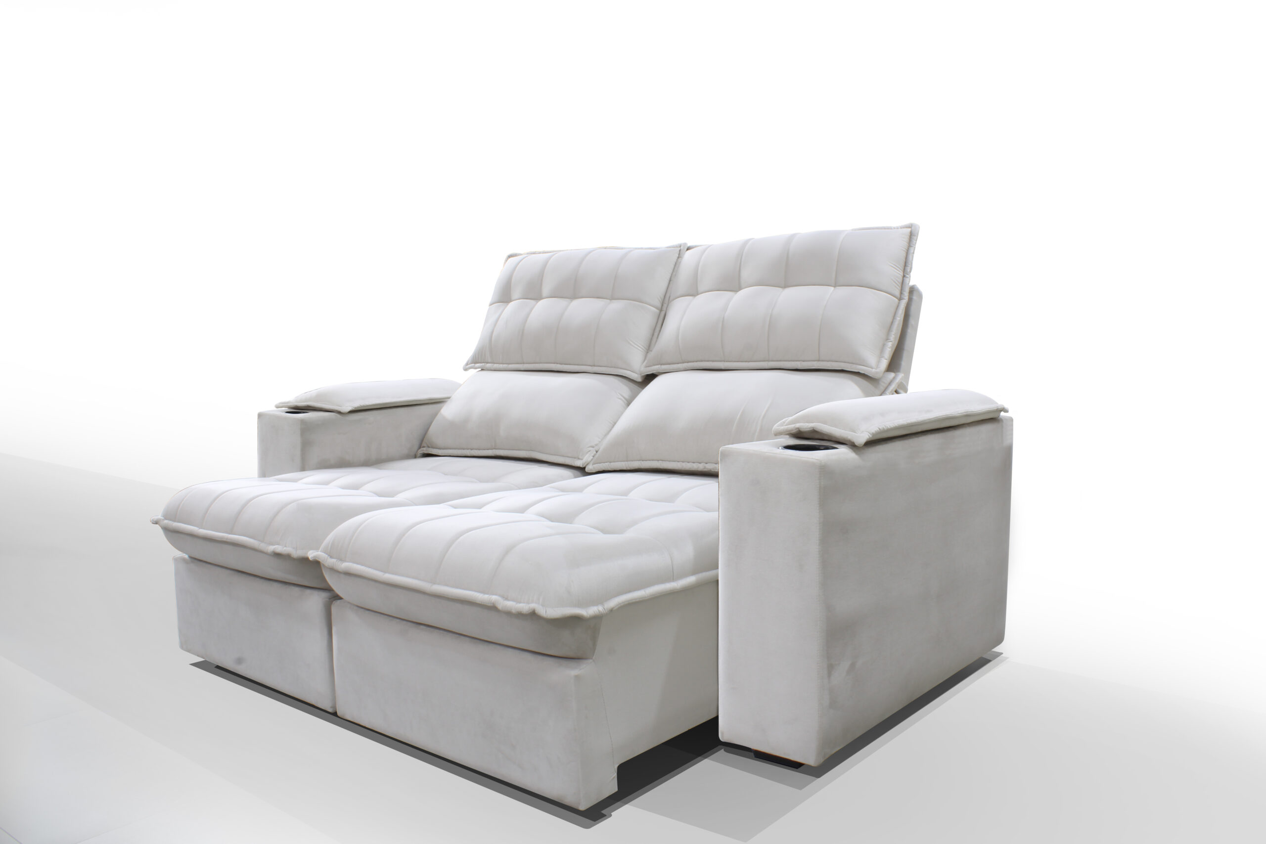 Sofá Irlanda, braço com almofada e porta copo