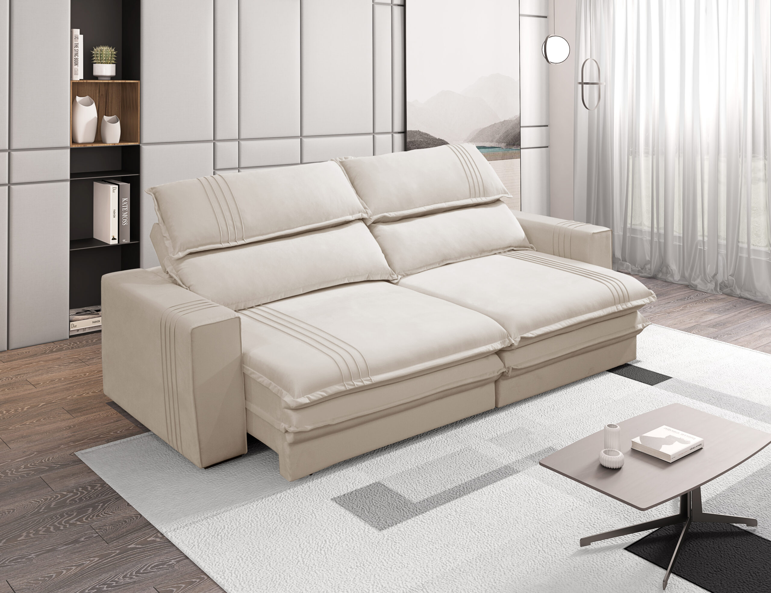 Sofá Olimpo, sofá com encosto reclinável e removível e braço reto