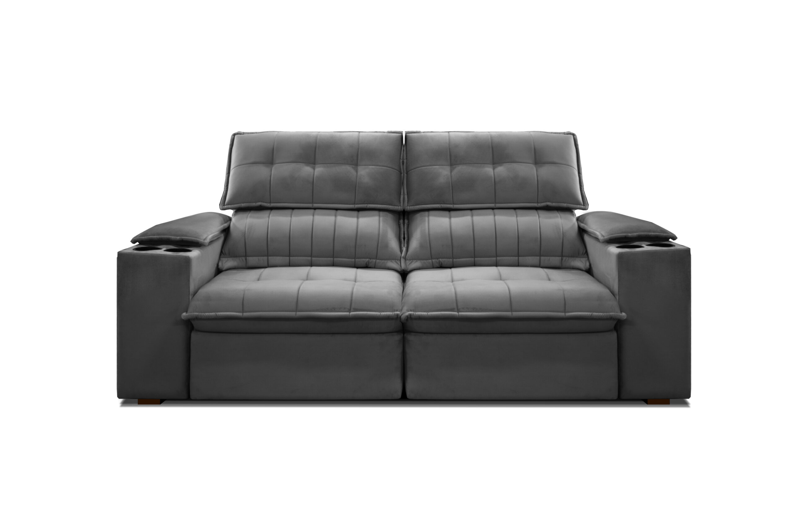 Sofá Venice, sofá reclinável com encosto removível, braço com almofada e porta copo